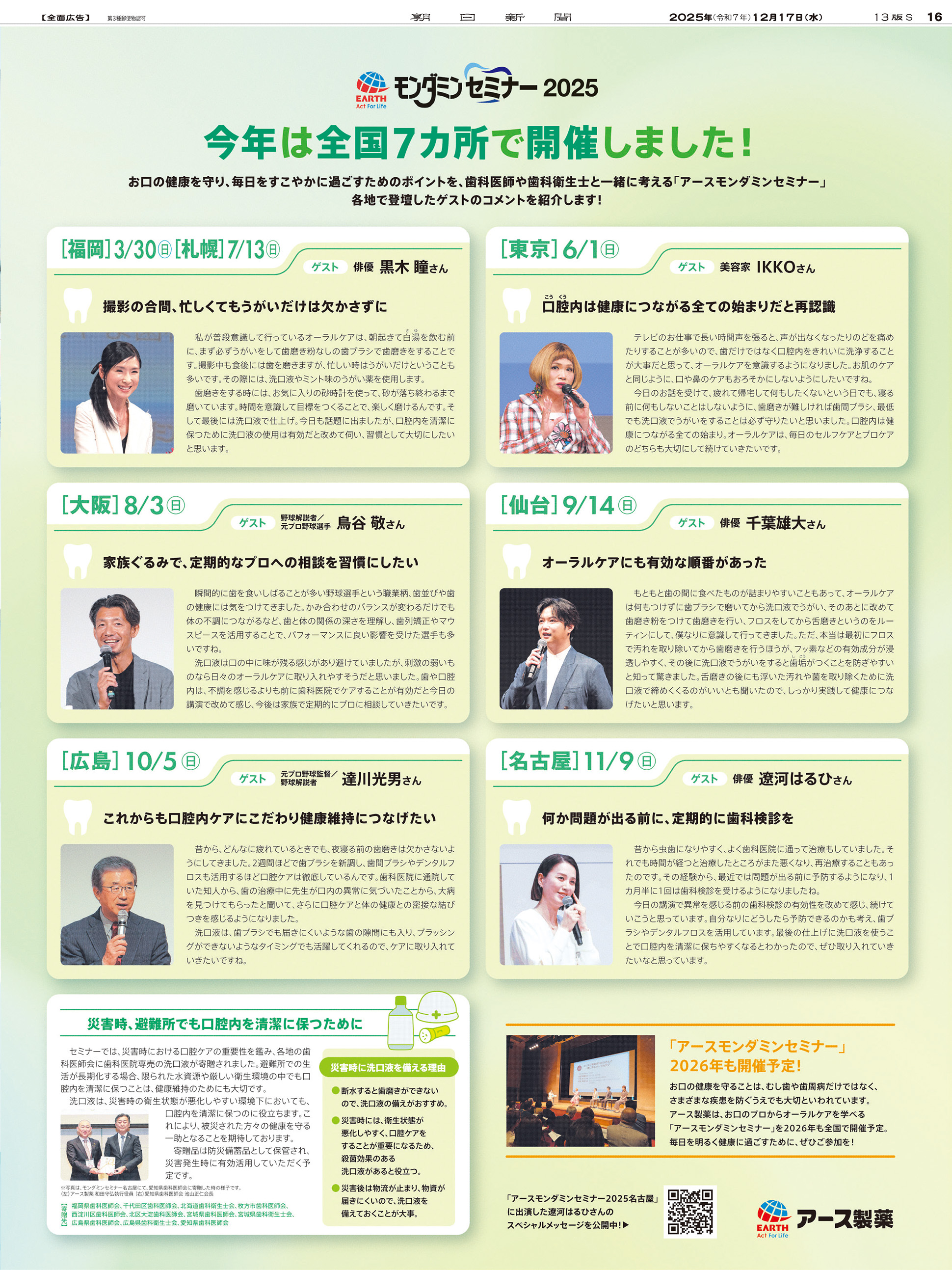 朝日新聞2025年12月17日朝刊にて、モンダミンセミナーの採録が掲載されました。