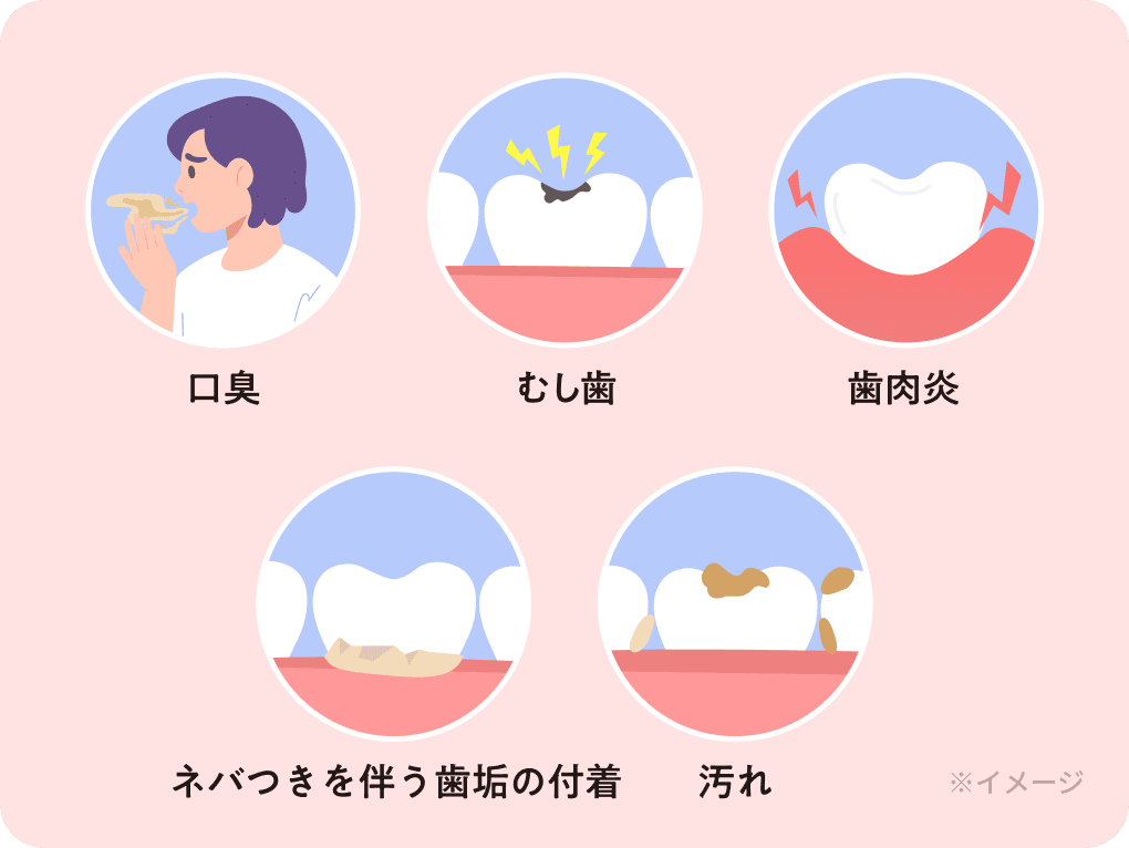 お口トラブルの原因の一つとなる汚れがたまってしまいます。