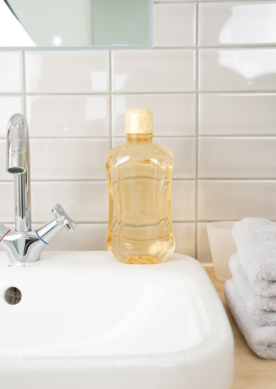 お好みに合わせてラベルを切り取ったり、はがすことができます。シンプルなデザインで洗面台に置いてもインテリアをジャマしません。