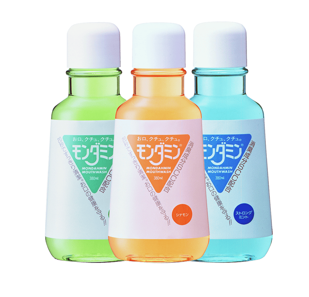 当時、アメリカで既に人気の「洗口液」に当時の社長が注目し、開発に着手しました。日本の市場では前例がほとんどなかったため、クリアすべき基準そのものから構築。特に日本人好みの香味を追求し、モンダミン ペパーミントは1987年に誕生。翌88年にはシナモン味を発売しました。